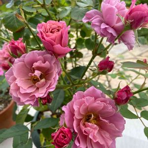 🌹あおい🌹 房咲きになりブーケ状に咲いてくれました💕 和バラらしい落ち着いた色合いで 好きです🍀生け花向いてる💖 2014 接木 鉢