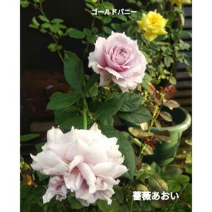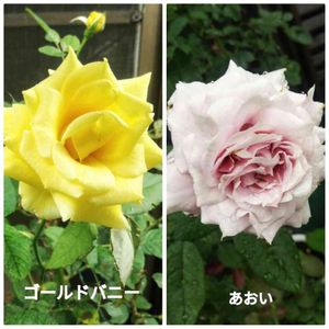 薔薇ゴールドバニー 下にもツボミがあります。 薔薇あおい 2輪目です。重みで下向きかげんです。