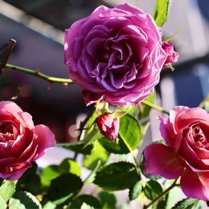 昨日投稿したpicを引きで撮ったもの。 2022年狭小庭の春⋆*❁* 右のポンパドールの花数の少なさに泣ける。°(°`ω´ °)°。 カミキリムシめ!!今に見ていろ‼️←どうするつもり? CAST 左上のピンクのカップ咲きの薔薇…マダムピエールオジェ その下のグレーの薔薇…カラーオブジュピター 更に下の濃いピンクの薔薇…あおい 右の濃いピンクの薔薇…ローズポンパドール 右の藤色のクレマチス…ベルオブウォーキング 奥に佇む木…スモークツリー ロイヤルパープル