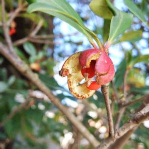 モッコクの実がはじけていました❗️ 開いた実の殻はミカンの皮みたい😆🎶