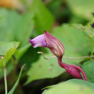 ナンバンギセル 南蛮煙管 ハマウツボ科ナンバンギセル属の寄生植物 在来種 日本全土に分布 野山に自生 引き続き 石神井川のワンドです。 すり鉢状になった深いワンドの底を探検し さてさて次へ移動しましょうかと、階段を上がって来たところで咲いてました。(もう数段で歩道に上がります) ワンドの底の方は増水すると水浸しになりますが 流石にこの辺りまでは水は上がってきません。 ビックリ!!! えー?!ナンバンギセルよね! 植物園で一度見たことありました。皆さんの投稿でも拝見してます。 でも まさか私の行動範囲で出会えるなんて想像してなかったので 驚きました。 高さ15〜20cmの直立した花柄 (この子は12〜13cmくらい) 長さ3〜3.5cm 筒状の 俯いたお花の花期は 7月〜9月 花言葉 物思い 俯く姿から連想した花言葉なんてしょうね。 古名は 思ひ草 道の辺の 尾花が下の 思ひ草 今さらさらに 何をか思はむ 万葉集より 作者 不詳 撮影 2022 9/17 石神井川のワンド …………………………………………………… Wikipediaより イネ科の単子葉植物(イネ、ススキ、サトウキビなど)の根に寄生する。葉緑素が無く、寄主の根から吸収した栄養分に依存して生育するため、寄主の生長は阻害され、死に至ることもある