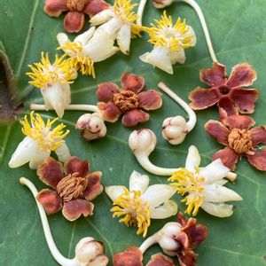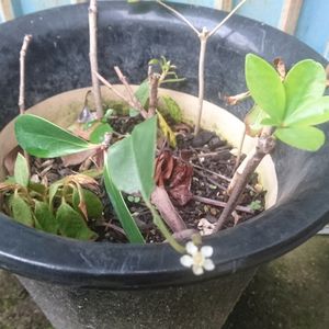 お隣さんのモッコクの花🍀 道に落ちている花殻を、よく見てみると、とてもおもしろい😄 雄花❓雌花❓蕊❓つわぶきの葉に載せてみました😁 これも、今までは気づいていなかった、GS効果でしょうか😅❓💕