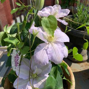 クレマチス 一鉢に3種植えしています 毎年、一番貧弱で花付きの悪いこの色。何故か今年はこの色ばかり😓 これはこれで嬉しいんだけど、 もしかして他の2種は枯れた⁉️ このコだけ名前が不明です わかる方教えていただけませんか?