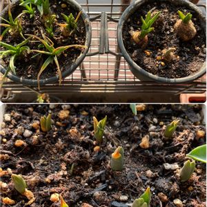 2023年 3月 31日(金) 15時 41分〜 撮影 我が家の 球根chanたち(*ฅ́˘ฅ̀*) 月末は 集合写真にしています.*・゚ .゚・*.パシャリ! Σpω・´) 前pic 2月 28日 ほぼ同じ配置 動かした鉢も 多し(*^-^*)ゞテヘヘ 咲き終わった お花も チラホラ出てきて・・・ ちょっぴり寂しさもあるけど 秋に太るように🧄 球根太らせよう( *˙ω˙*)و グッ!🌿🌿🧄♡ 右下のお写真= チオノドクサ いつもはお安い土を使うのだけど 今回 球根用の土を使い 肥料も入ってるのに 追加肥料を入れたのが ダメだったのか…… それと お水の加減が、、、 今回の反省点(ヽ´ω`)トホホ・・ 球根chan (>_<) オクサレサマ💦 次回のための痛い勉強になりました💧 しかし💧 球根のオクサレサマは 初めての経験(´д`|||) 球根chanごめん そして 今日は暖かく.*・゚ .゚・*.🐝⋆゜ 来月は チューリップ咲くかな⸜🌷︎⸝ ムスカリ・ 水仙も楽しみ(*ฅ́˘ฅ̀*)♡ 春は🍀 «٩(*´ ꒳ `*)۶»ワクワク ☺︎︎︎︎