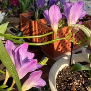 2023年 3月 31日(金) 15時 43分 撮影 ✎*・・・ 生長記録ように φ(..)カキカキ 昨年 息子くんから頂いた🎁 * フリージアの 球根chan *・・・ (´˘`*) 息子くんのお陰で 初めてフリージアを 育て咲かせることができた🧄🌱🌿💜 嬉しくて゚・*:.。❁ 記録に残したく (〃 ̄ω ̄)σアッチ 💜 💜 σ(・・。) コッチ・・・ 💜パシャリ! Σpω・´) ( *¯ ꒳¯*)クンクン♡♡ いい香り 息子くん.*・゚ .゚・*. ありがとう(ㅅ´ ˘ `)♡*゜ ☺︎︎︎︎