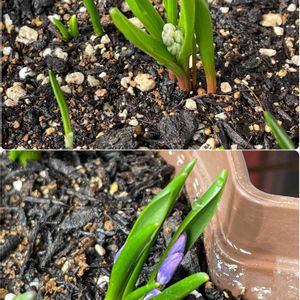 2023年 3月 5日(日) 16時 16分 撮影 ムスカリ * ラティフォリウム *・・・ (´˘`*) 今日は ラティフォリウムの お話をしていた方の かわいい芽を見て ♡。・:・(*´ー`*人) 我が家の ラティフォリウムにも スポットをあててみた- ̗̀( ˶'ᵕ'˶) ̗̀-🌱 × 5 春に向けて🟣🔵🐝⋆゜ 元気に育て.*・゚ .゚・*.🍀 ☺︎︎︎︎ 夜勤行ってきま〜す🌙*゚