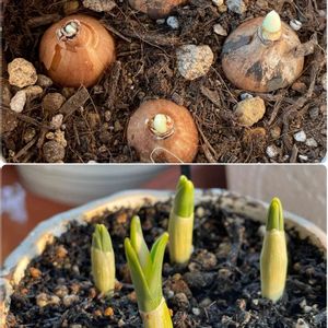 2023年 1月 18日(水) 15時 36分〜 撮影 ✎*・・・ 成長記録 _φ(°-°=) 2年目、3年目の * 水仙chan *・・・ (´˘`*) 昨日撮影の お写真〜 11月 19日に球根を植えたので 今日で まる2ヶ月 昨日1日早く撮影をし、 コラージュまでしたのだけど 今日撮りなおそうと思っていたのに撮れず ( ´•ᴗ•ก )💦︎︎︎︎︎ なので 生長記録に 昨日のお写真を(、._. )、 右下の鉢から 何やら可愛らしい芽が出てきてる🌱 こぼれ種かな? なんの種かな? このまま生長を楽しもう♡ 🌱🌱 ♡(*´ `*)フフフ ☺︎︎︎︎