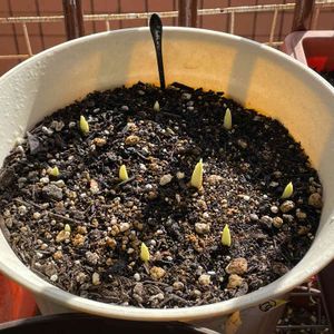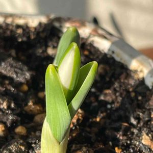2023年 1月 2日(月) 15時 51分 撮影 ✎*・・・ 生長記録 _φ(°-°=) 11月 14日に植えた * ミニアイリスの 球根 *・・・ (´˘`*) ぷっくり太った 色白な芽 ➸♡ キュン(*ˊ꒳ˋ*)੭♡🌱♡ 大きくなぁ〜れ🍀*゜。・:・(*´ー`*人) ☺︎︎︎︎ 夜勤行ってきま〜す🌙*゚