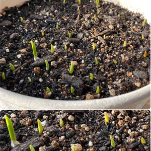 2023年 1月 7日(土) 14時 48分 撮影 ✎*・・・ 生長記録 _φ(°-°=) 12月 10日に植えた * 2年目の チューリップの 分球の赤ちゃん *・・・ ⸜🌷︎⸝ その② 葉っぱさんだけでも出てくれたら 嬉しいなぁ♡〜と 願いながら植えた球根chanたち すぐに次々と可愛い芽が🌱.*・゚ .゚・*. お母さん嬉しいよ。・:・(*´ー`*人) この中で 咲いてくれるコは いるのかなぁ( ´͈ ᵕ `͈ )♡⸜🌷︎⸝🍀*゜ 下のお写真は ちょっぴりズームで 元気に育て.*・゚ .゚・*.🍀*゜ ☺︎︎︎︎