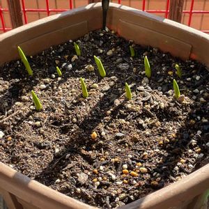 2023年 1月 9日(月) 15時 33分 撮影 ✎*・・・ 生長記録 _φ(°-°=) 12月 4日に植えた お見切り品 球根 .*・゚ .゚・*. * ミニアイリス *・・・ (´˘`*) |ω・)ヒョコッ🌱 |ω・)ヒョコッ🌱 ベランダに出ると 可愛い芽たちの 視線を熱く感じる( ´͈ ᵕ `͈ )♡🌱 ウキウキをありがとう🌱( ◜ω◝و(و " ☺︎︎︎︎ 夜勤行ってきま〜す🌙*゚