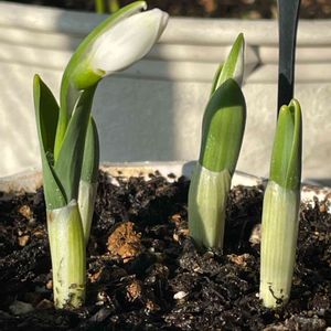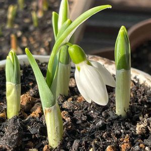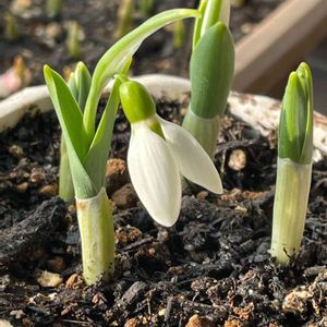 2023年 1月 12日(木) 14時 40分 撮影 ✎*・・・ 生長記録 _φ(°-°=) * スノードロップ エルウィシー *・・・ (´˘`*) 🌱🤍・・ (๑°ㅁ°๑)!! 蕾が一気に膨らんだ.*・゚ .゚・*. (っ*ᵒ̴̶̷͈᷄ᗨᵒ̴̶̷͈᷅c)ワクワク 🤍🌱 ☺︎︎︎︎