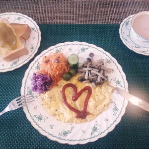 🌹✨𝓖𝓸𝓸𝓭 𝓶𝓸𝓻𝓷𝓲𝓷𝓰🌹✨ 日曜日のモーニングプレート𓌉◯𓇋 最近ハマっている、乳酸発酵漬の野菜のマリネに、ハーブ入りスクランブルエッグ、自家製のルバーブのコンフィチュールをたっぷりと塗ったバタートーストを添えて…😋❤ Have a lovely Sunday🎶🎶