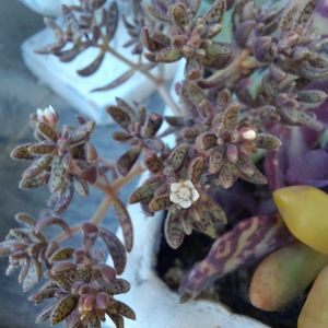 ミセバヤが咲いてきました 昨年より小さめかなぁ 相変わらずの葉っぱが残念な🏠️のミセバヤ 花前にバラバラと落ちてしまいました