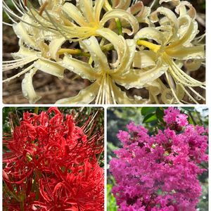 今日は雨が降ったり止んだり☔️ 実家の庭の彼岸花と百日紅😊 とても綺麗に咲いてました。 🌧外組多肉植物達はダメになりそう🫣💦