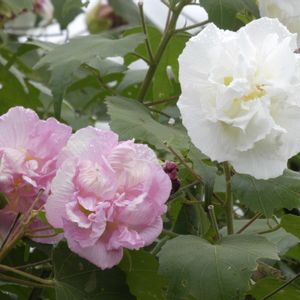 「今日のお花」 *フヨウ* こちらは、スイフヨウ(酔芙蓉) 午前、午後で花びらの色が白→桃色に変化していきます。 🏷ドラマチックな土曜日