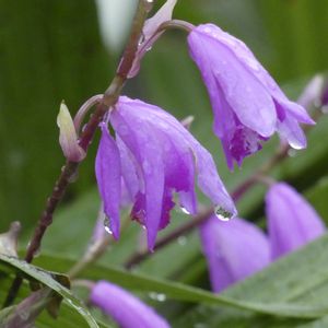 「今日のお花」その② *シラン* 今朝撮り。 昨夜降った雨粒が付いていました。