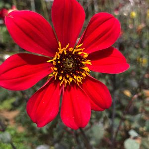 ダリア 見事に赤いダリア 2022.9.17 千葉市都市緑化植物園で出会いました。 🏷真っ赤な火曜日 🏷あっ火曜日 🏷可憐な火曜日 に参加させていただきます。 検索したらDahlia Bishop of Auckland 「オークランド司教」??