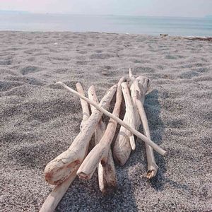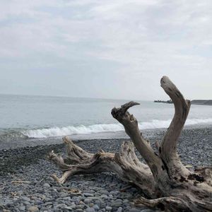 犬の散歩(代行)と流木拾いに海にきました。 収穫あったよ。 プラントハンガーやタペストリーの材料にします。 枯れたグリーンってことで… ダメかな?