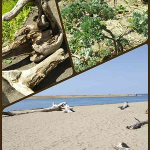 秋田市雄物川河口です。 朝イチ熱帯魚に使う流木を頂きに😊松に似ている植物があちこちに這えてました。今日は庭いじりしたり楽しかった😁