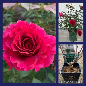 ■My Dear/マイディア 2018年コマツガーデン作出、四季咲きのHT。今年お迎えした大苗がたくさん咲きました。葉は病気にやられているので見ないでください🙈今日は暑い🌞 最高気温29℃、最低気温17℃ (以下、コマツガーデンHPより) カップ咲きの花は1輪もしくは数輪の房咲きでローズ色、ほんのりと低温時は黄色がのる。春は浅いカップ咲きだが秋は深いカップ咲きになる。花弁が厚く花もちがよく雨にも強い。樹形は半横張り性で自然とまとまるので鉢栽培にも向く。耐病性も強く育てやすい品種。 花期:四季咲き 花色:ローズ色 香り:微香 花形:カップ咲き 花径 10cm/樹高 1.0/ 幅 0.8m 樹:普通 樹形:半横張り性 耐病性:強い