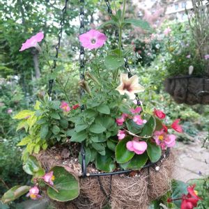 寄せ植えを作った。ベゴニアは株分けして増やし、家にあるものを集めた寄せ植え。