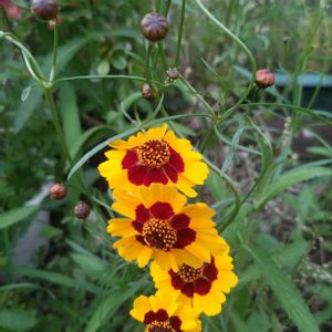 フェリシア。挿し芽もして3本あります。マリゴールドの零れ種や三尺バーベナが賑やかに咲いてます