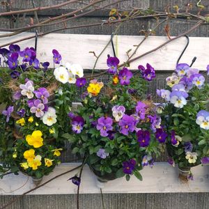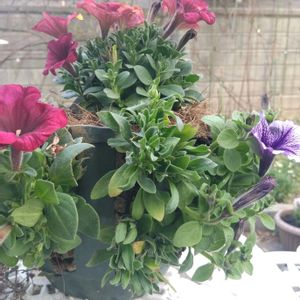 カロライナジャスミンが咲いてきました。 ペチュニア、ラグラスとの寄せ植えです