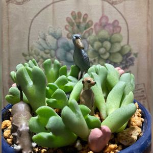 こんばんは╰(*´︶`*)╯♡ 暑い暑い🥵36度😂 💚💚コノフィツム💚💚 クーラーの部屋に持ち込んで🪴 脱皮の枯れ葉🍂バリバリお掃除 2枚目に購入時(2019年9月)の姿がありますが 毎年倍々に増えてくれます💚 なんかヒョロ〜お行儀悪い姿だから近いうちに植え替え予定🗓️ 我が家のハシビロコウ、ミーアキャット、イボイノシシに支えてもらってます(⌒-⌒; )