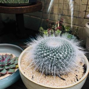 久々に Tokiiroさんへ! アトリエに飾ってあった、サボさん! 名前は分かりません😅 直径12cmくらいです。 この子は誰でしょうか? 植物は見るだけにして、 良さげな鉢を2つ買って来ました。 速攻、教えて頂きました!! ありがとう。