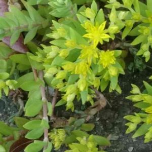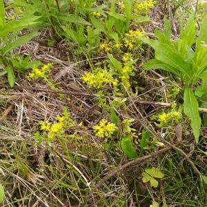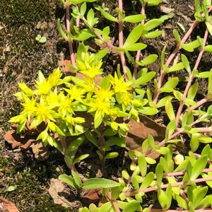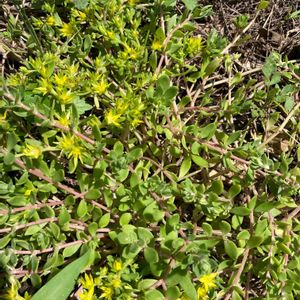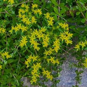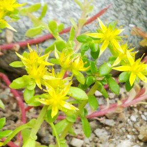 このお花は何でしょうか? 庭の一角に雑草のように生えています😆🌿 放射状に枝をのばし、よ~く見れば多肉植物のお花のようでかわいいのですが🐝 抜いてしまおうか、どうしよう😖💧