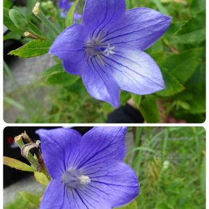 おはようございます GS今日のお花 ミヤコワスレ 今年 お迎え 夏越し成功して 来年も咲いてくれるといいな〜 ↓ ベルフラワー 我がベランダの長老になりました 7年目 ベランダで 4月18日 5月3日