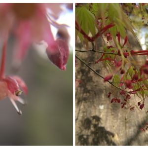 2023/04/09 紅葉のお花が美しいシーズン パシャパシャしていたら… 流れる雲が切れて幹に…