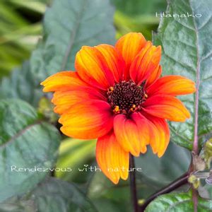 🍀 銅葉ダリア レッドスキン🍀 お洒落なオレンジ色のダリアが 鮮やかに咲いています🧡 皆さま、今日も一日お健やかに😊