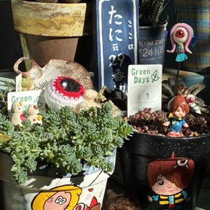 1枚目〜3枚目 🏷9日は黒法師の日 🏷えなりの日 🏷たぬきの日 🏷キュピの日 昨日の🏷タヌキ祭り も🤣w𐤔 禿げ散らかしていた黒法師さん達が☆復٩(ˊᗜˋ*)و活☆したよ〜⤴︎ ⤴︎*\(^o^)/* たかりえさんのリメ缶に月の雫さんからの黒法師さん!! 月の雫さんのえなりータン添え🫶️💗💕(*´ч`*)カワユス💕💕 2枚目 マロママさんに頂いたたぬきのフィギュア💕やマイメロちゃんからの🦝鉢💕、信楽焼豆狸にピンクのたぬき鉢、信楽焼タヌキュピちゃん、たぬきおぼうぼ被った炭キュピちゃんも集まって来たよ〜ᐢ⓿ᴥ⓿ᐢw𐤔🎶 4枚目、5枚目 🏷ムーミンの日 さくら餅子さんのミイちゃん💕鉢に入った虹の玉が紅葉して可愛い❤️❤️❤️虹の玉はみっちゃんから💕 マイメロちゃんのムーミン&ミイとミイ&ニョロニョロピック添え🫶️☺️💗💕 5枚目 3〜4年前に作ったリメ缶バッグのムーミンデコパが禿げてきました💦ずっとお外の軒下なので仕方なし🙋♀️💦