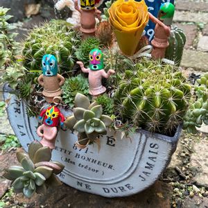 (*´▽`)ノ ハーイ♪♡♡ やかん寄せ植え🌵 🏷️タコの日🐙 🏷️るる かまぼこ板で繋がる輪 ① やかんクリスマス🎄🎅⛄️ ② 短毛丸さん💚 タコ🐙添え ③ リトープスさん 🐙添え ④ お気に入りコーナー ディッキアさん ⑤ ブロンズ姫さん ニョローン🫣💦💦 サビサビ缶にて〜 放置になってます😂💦💦