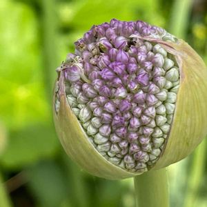 アリウム ギガンチューム パカ〜と割れて、色付いて来ました🎶 和名 花葱 ユリ科 アリウム(ネギ)属