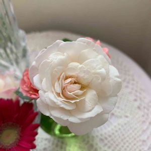 つるバラのブルームーンとプロスペリティ カットして、室内に飾りました。💕