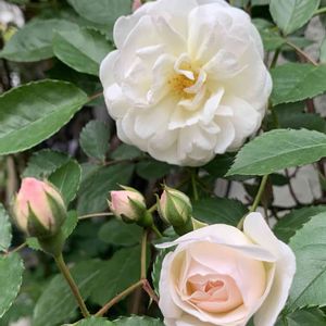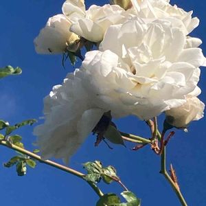 こちらはアイスバーグの周りに植えた 薔薇のひとつ プロスペリティです。 アイスバーグさんよりもトゲ鋭いので 今日も何回か痛いおもいをしました〜 昨年の秋に植えたばかりのわりに 凄い勢いで咲いてくれてます。 シュートも伸びて来たので、パーゴラの上 占領するのはこの子かも〜ヾ(*´∀`*)ノ こちらも白い薔薇なので… 哀悼の花のタグ 追加させていただきました。