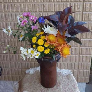 おはようございます☺☁️ 今日は昨日よりは晴れないようなお天気ですが……庭でゴソゴソするにはいい天候かもしれませんね~🍀😊✨ 切り花を楽しむ4作めです。この花器に生花'をいけたのも初めてです。今まではアーティシャルフラワーを合わせていましたが……生花のほうがやはり美しいですね~😚💕💗 秋らしい雰囲気になったかなあと……🍁🍠🍆🌰🍂🍁 素敵な秋の1日をお過ごしくださいね👏😊💕