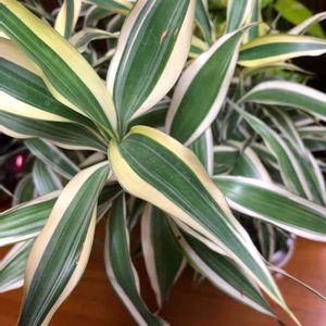 幸福の木ドラセナを3種類紹介します。 ドラセナ ジェイドジュエルは、濃い緑と白のコントラストが綺麗です。