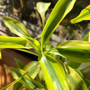 今朝10時に撮影、ドラセナです。 柔らかい緑の縞模様が美しいです。