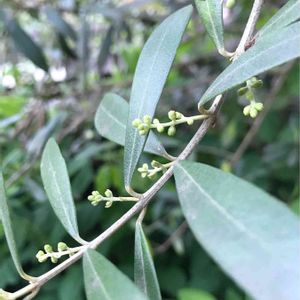 今日のお花 🌲オリーブ🌲 白い小さな可愛い花をつけますが まだまだ固い蕾 異品種を植えておらず花は咲いても実がつきません😢 銀葉の美しい常緑樹 シンボルツリーとして庭に植えられているのをよく見かけます。