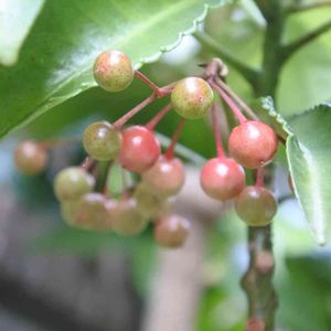 マンリョウの実。 ほんのり色付いてきました。 正月までに赤くなりそう。