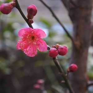 庭の紅梅が一輪だけ咲きました。まさに紅一点❗