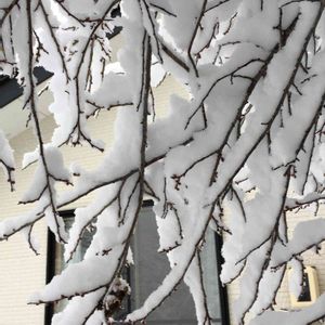 梅の木⛄️ 雪の重みで枝垂れ梅に❄️