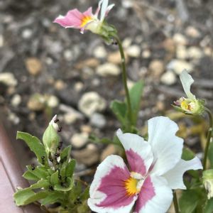 今日も暑かったですね🥵 びっくりです‼️ ①もう終わったと思ってたパンジーが、形はいびつになっちゃってるけれで咲いています ②③ダイソーさんの種から育てた絞り咲百日草 ④⑤ポンポン咲きダリア みんな暑さに負けず 咲いています!!