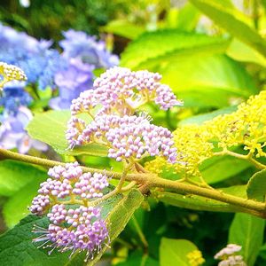 ムラサキシキブナカヨシコヨシ 花後の実も楽しみ 奥は紫陽花ヒナマツリ