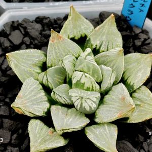 ●ススキノキ科 ツルボラン亜科 ●ハオルチア属 ●ベヌスタ交配錦😻😻 おはようございます!🥱🥱😅🥱 以前より成長してきました。☝️🤓 あまり良い株とは言えませんが、ウチで増えた子なんで愛着がありますね!😋😆😍 😆このまま見守りたいと思います…。 やっと金曜日だ〜 明日は、ベランダのビニールハウス設置するかな。😅