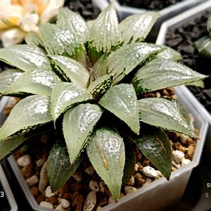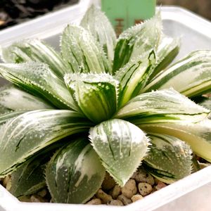 ●ススキノキ科 ツルボラン亜科 ●ハオルチア属 ●万象交配錦✕雪国😻😻 子株が少し成長してきました。☝️🤓 親株似の良い株みたいです!😋😁