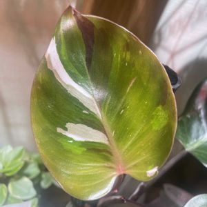 新葉がひらきました(*´︶`)🌿,, 赤⸜❤️⸝のはいるフィロデンナイトさん⚔️ 今回は⸜❤️⸝少なめ だけど 葉の付け根ピンクでかわいい🎀🥰 白少〜し🤏🏼入って良き(๑•̀ㅂ•́)و✧ ②前回の葉 色の変化🌈⏱ ̖́- このままワインレッド🍷残るのかな〜?!🤔💭